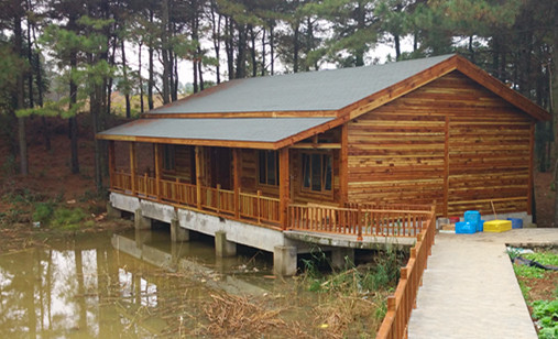 本工程采用防腐木南方松,雙層墻體,地面與墻體中間分別有防水保溫的保溫棉填充,起到冬暖夏涼的效果,成本相對較高一點,可實用性非常強。